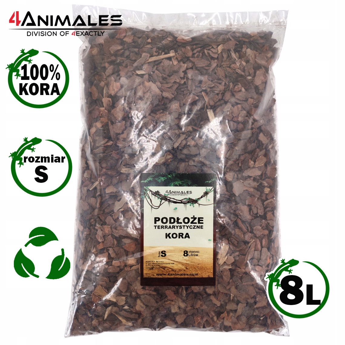 Skład kory to mieszanka naturalnych kawałków kory drzewnej, które są idealne do terrarystyki. Jest łatwa do ułożenia na dnie terrarium, zapewniając doskonałą warstwę drenażową i absorbującą nadmiar wilgoci. Dzięki swojej lekkości i naturalnemu wyglądowi, kora doskonale imituje środowisko naturalne dla wielu gatunków zwierząt tropikalnych, jak węże, żółwie, jaszczurki czy gekony. Jest też odpowiednim podłożem dla większości ssaków i gryzoni.