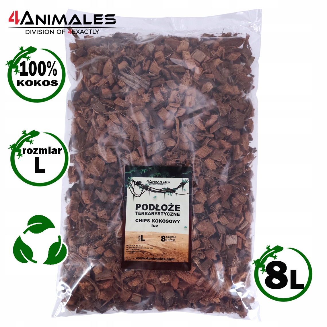Chips kokosowy jest idealny jako podłoże dla wielu gatunków gadów, płazów, czy insektów, takich jak: