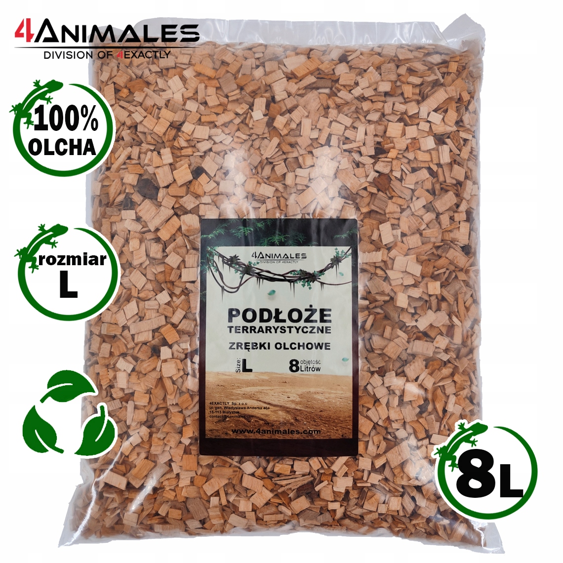 Podłoże olchowe, zrębki do terrariów i klatek size Large 9-12mm 8 litrów