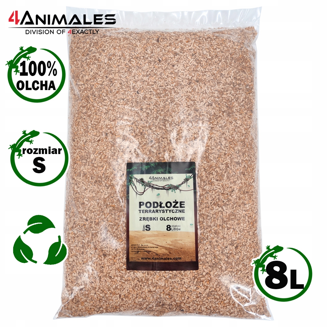 Podłoże olchowe, zrębki do terrariów i klatek size Small 2-4mm 8 litrów
