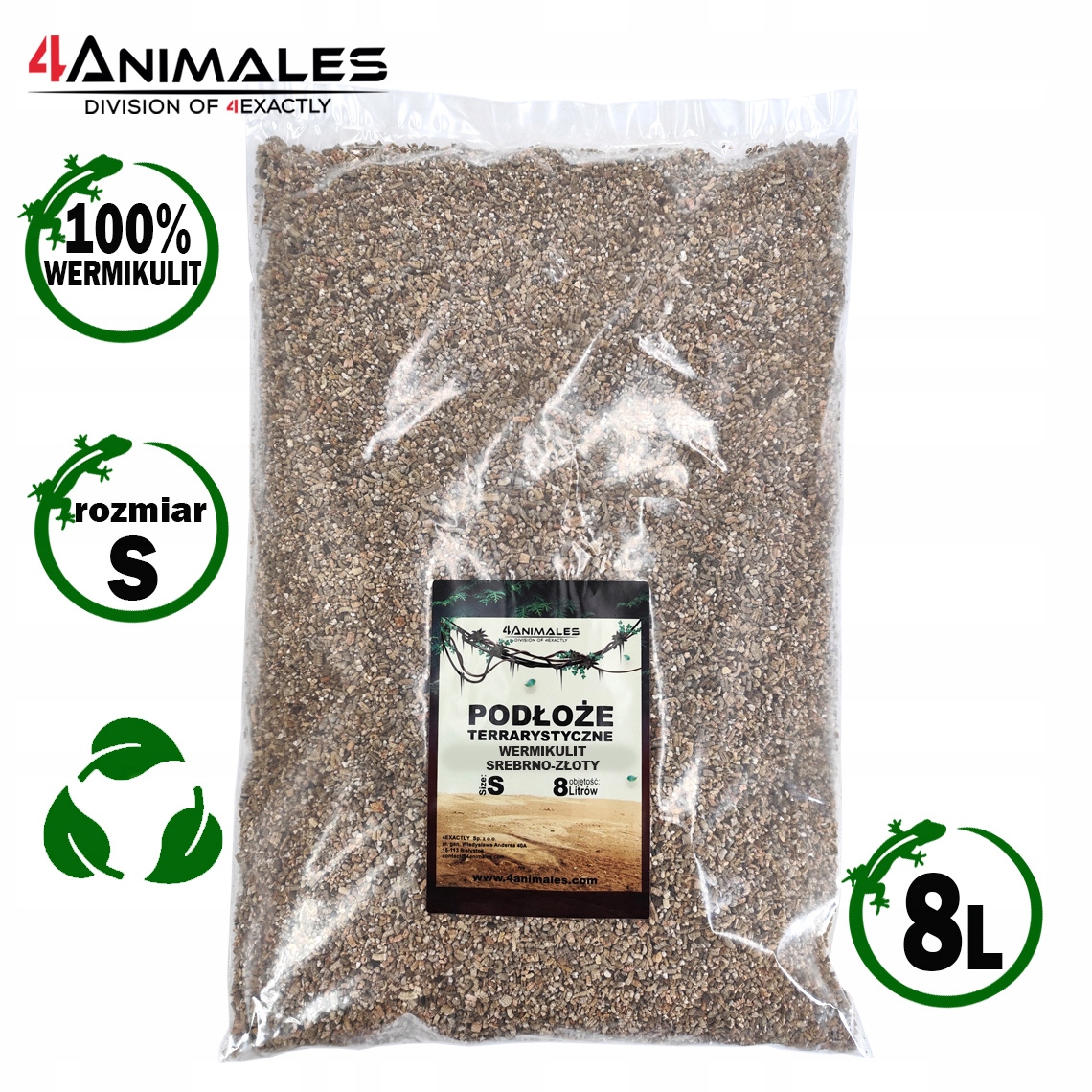 Wermikulit srebrno-złoty podłoże do terrarium size S (Small) 2-4mm 8 litrów