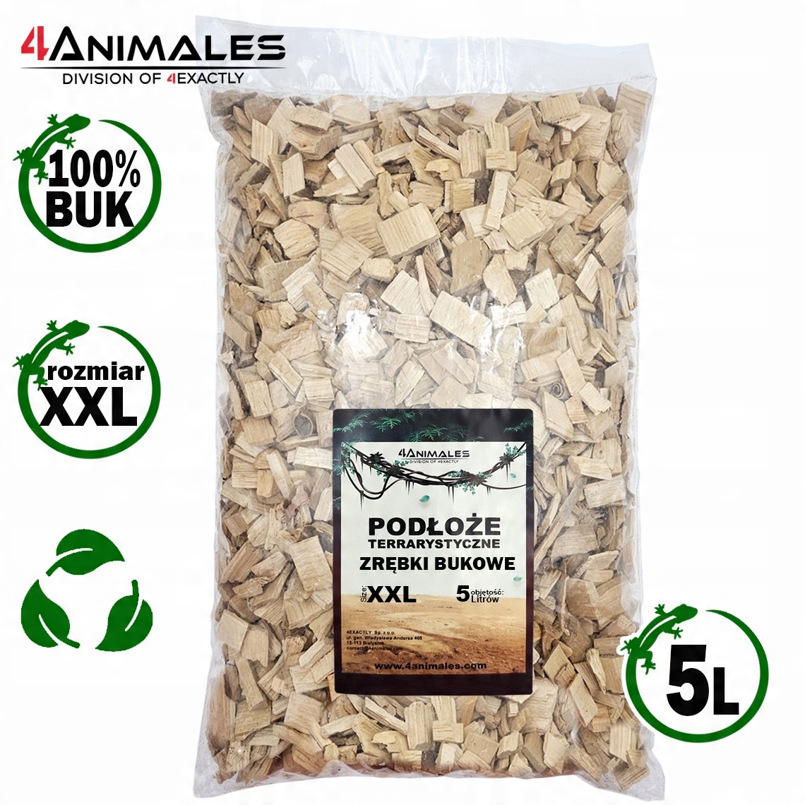 Zrębki bukowe, podłoże do terrariów i klatek size XXL 2-4cm 5 litrów