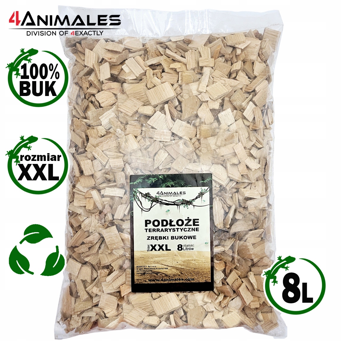 Zrębki bukowe, podłoże do terrariów i klatek size XXL 2-4cm 8 litrów