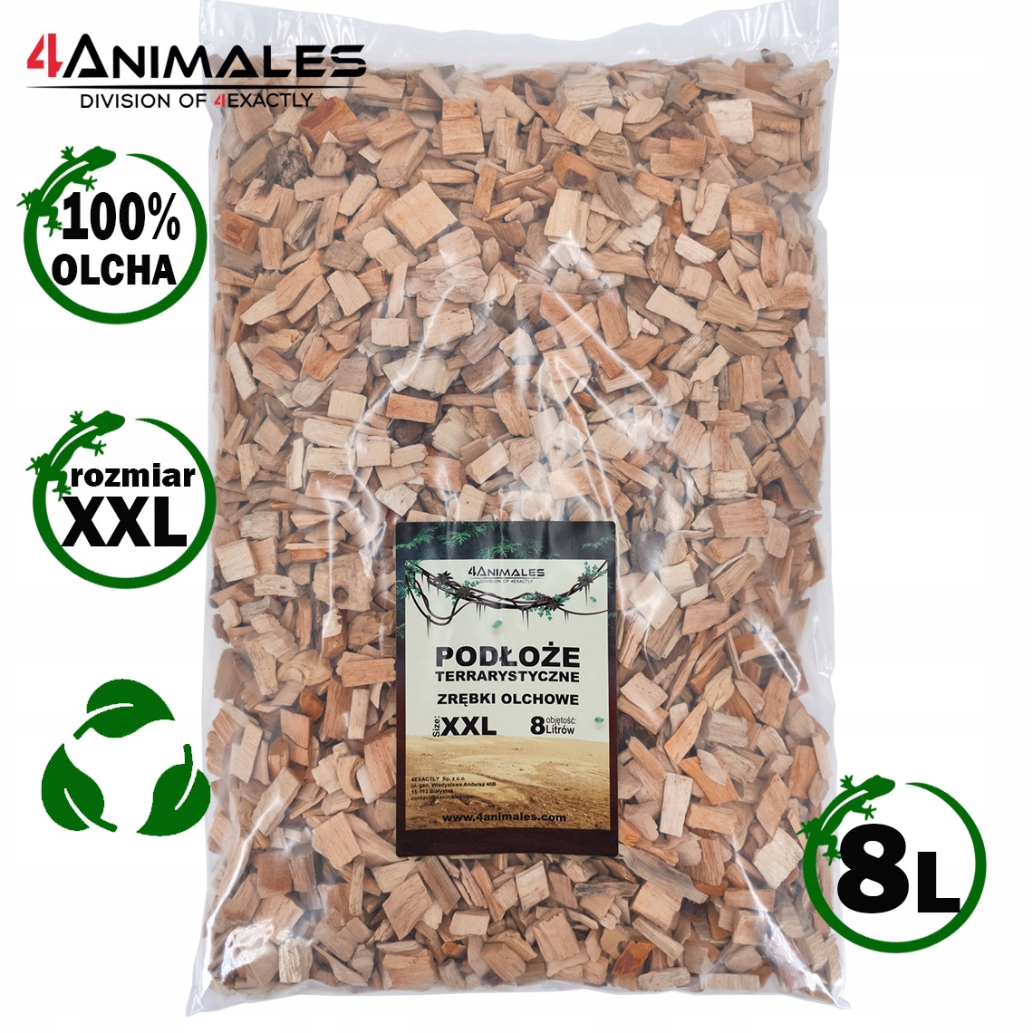 Zrębki olszynowe do terrarium, podłoże dla gadów, ptaków 8L rozmiar XXL
